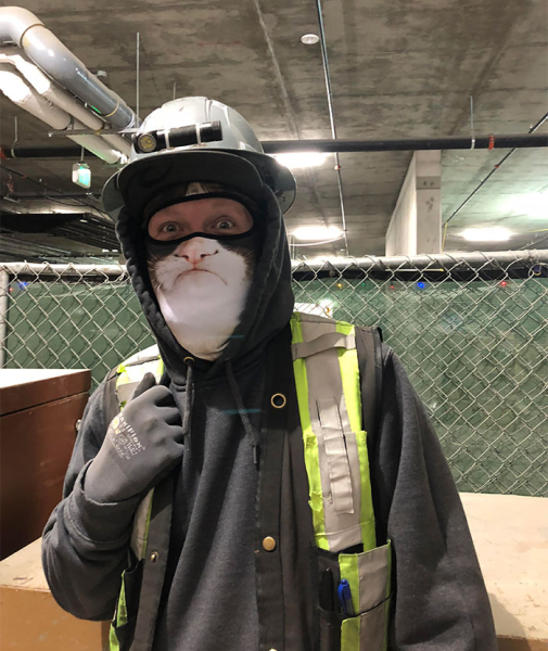 «Сегодня утром было холодно, поэтому мой коллега явился на работу в этом».