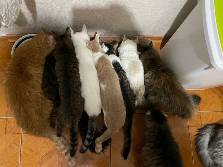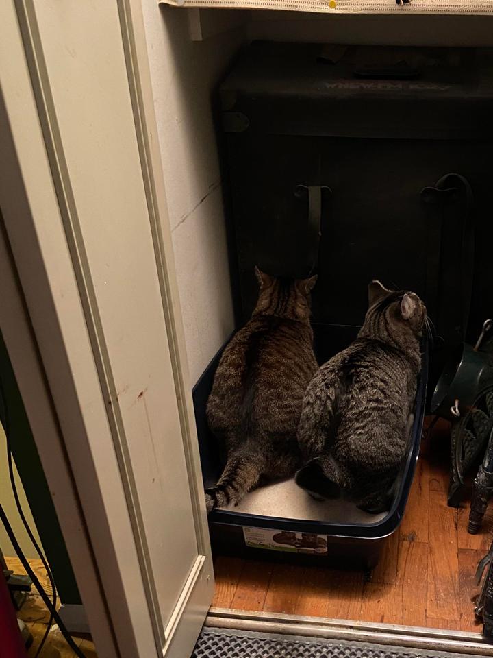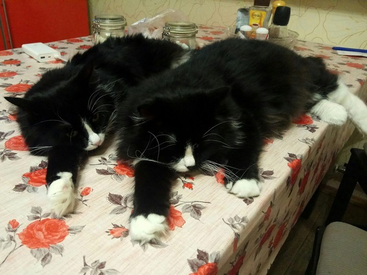 7. Если в доме живет два кота, то зачастую они все делают вместе. Причем в буквальном значении этого слова.