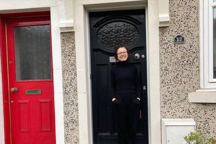 На фоне черной двери стоит девушка, хотя с первого взгляда ее удается увидеть далеко не каждому