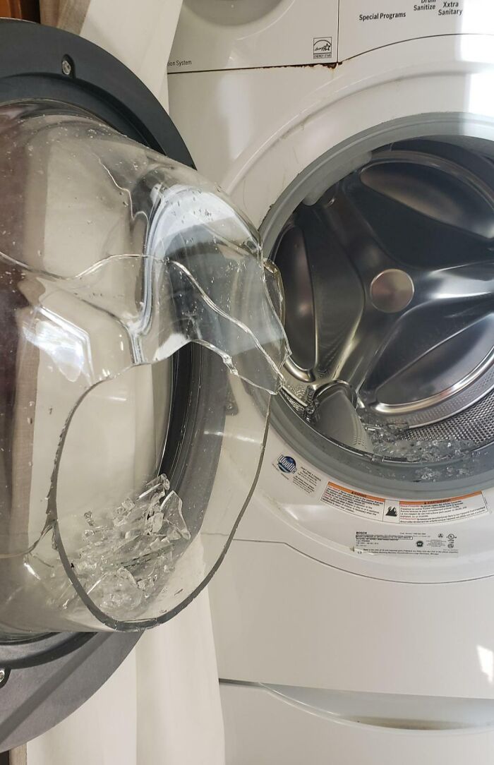 «Моя жена загрузила кучу белья в стиральную машину и, вернувшись, обнаружила, что внутреннее стекло разбито»