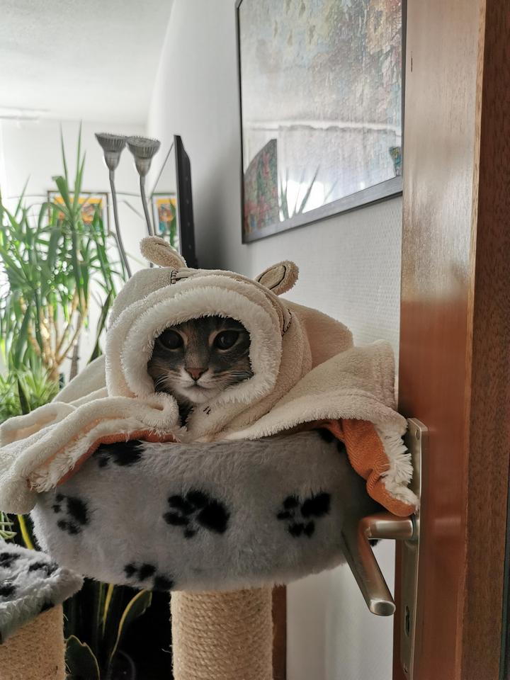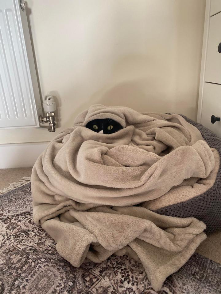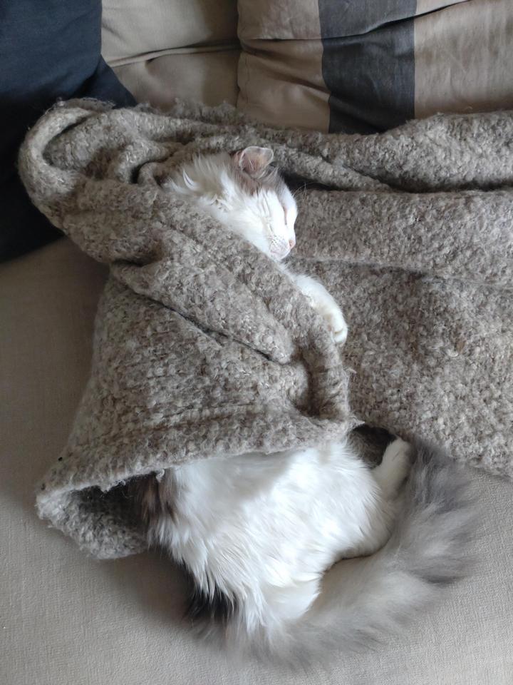 3. “Сегодня настолько холодно, что этот котик закутался с головой”