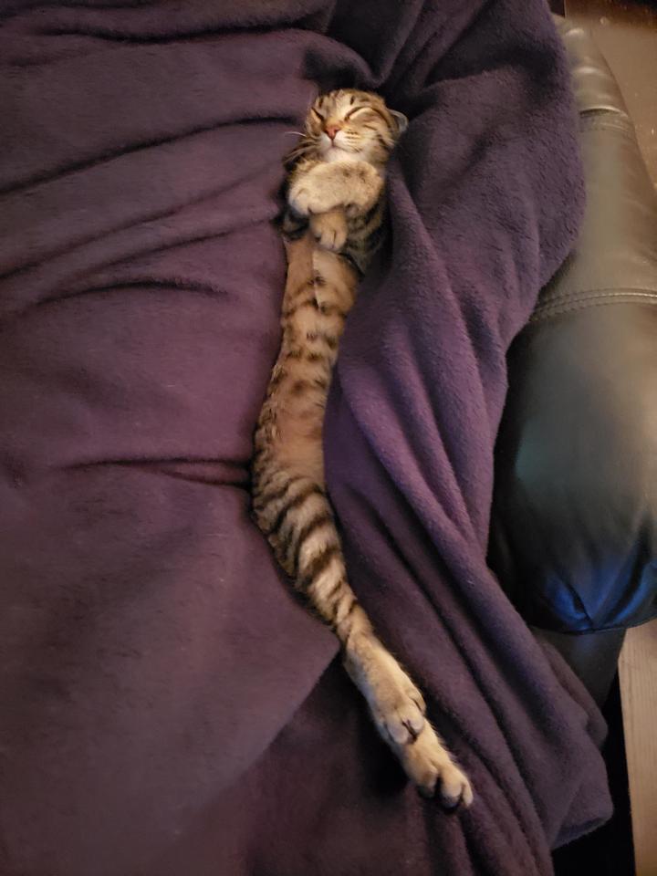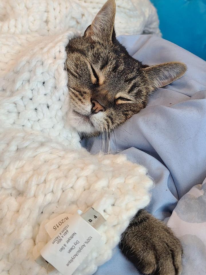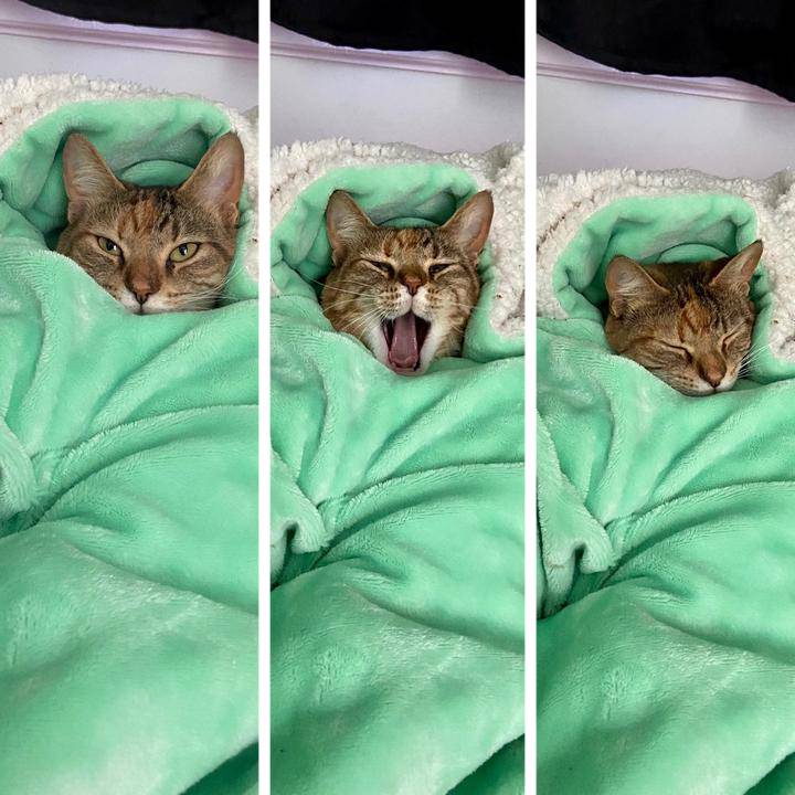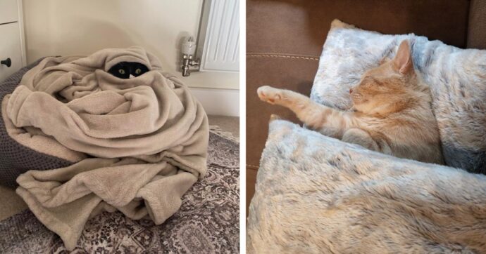 9. “Мой котик просто обожает спать под мягким пледом”