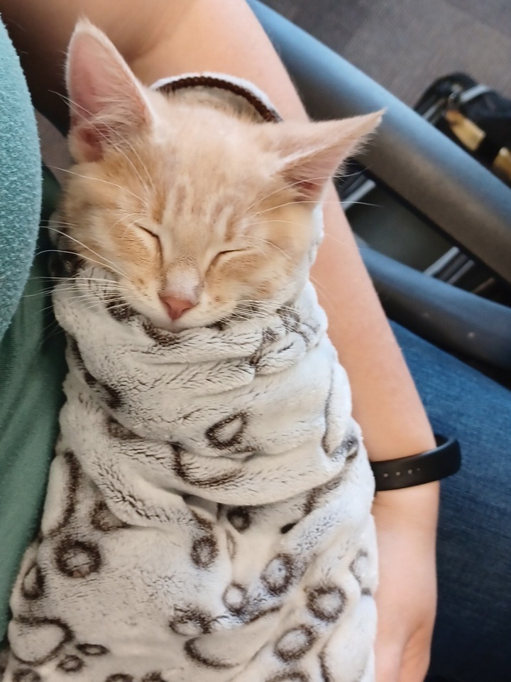 14. “Взяла своего кота на работу. Переноски у меня нет, потому в транспорте пришлось буквально запеленать его, как младенца”