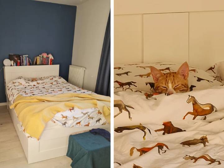 8. Вот что бывает, когда случайно заправить постель вместе с котом