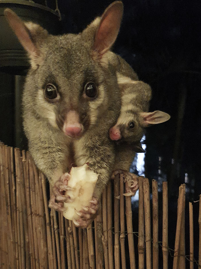 «Поссум, который приходит к нам на веранду каждый вечер, прошлой ночью привел кое-кого особенного! Знакомьтесь, Декстер и Бакстер!»
