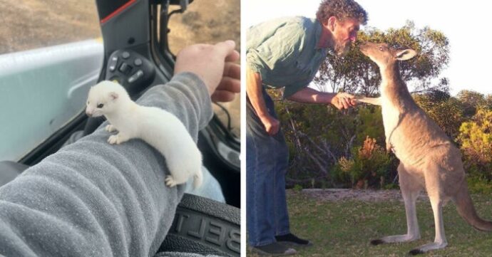 «Мой папа живет один в отдалённой от города местности в Австралии и заботится о семье диких кенгуру. Сегодня он прислал мне эту фотографию»