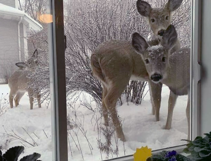 Семья оленей пришла в гости