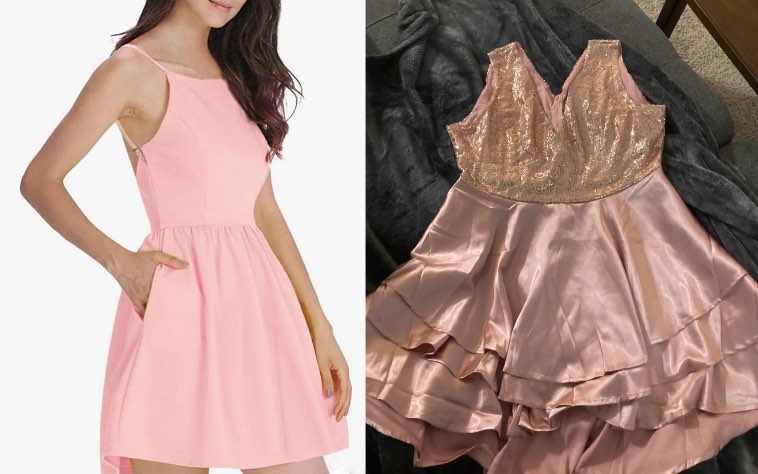 “Платье, которое моя мама заказала на случайном сайте. Она наивно полагала, что оно будет таким, как на картинке.”