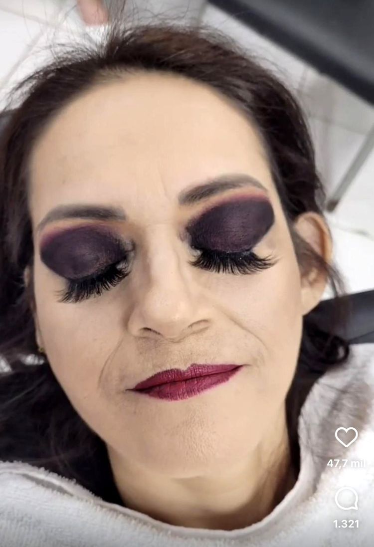 Этому «мастеру» явно нравится создавать впечатление, словно у её клиенток дырки вместо глаз