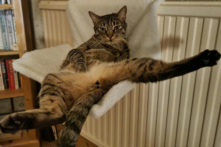 Пушистики умеют принимать практически любые позы, какие только не придумает их маленькая головушка. Видок у них в такие моменты, честно говоря, тот еще. Ведь так сразу и не определишь, то ли любимый котик сломался, то ли он просто решил продемонстрировать всем, какой он ловкий и пластичный.