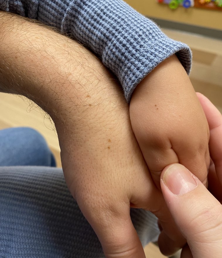 16. “Это не случайное совпадение, но все равно интересно. У моего сына есть 2 родинки на руке. Там же, где и у меня.”
