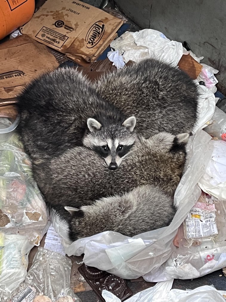 12. “В мусорном баке редко увидишь что-нибудь красивое. Но бывают и исключения, например, если там поселилось семейство енотов.”