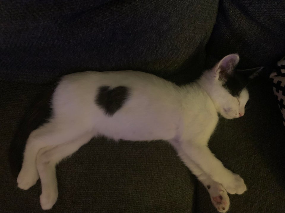 У тётиного кота на боку написано слово «NO» и обведено в кружок