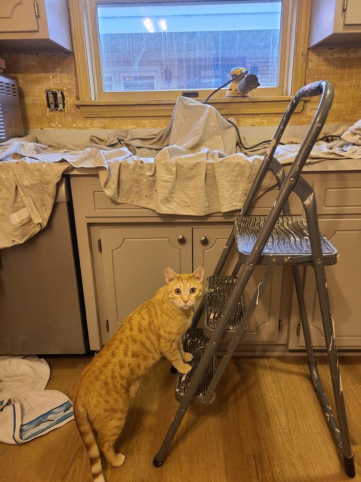 13. “Судя по выражению мордочки этого рыжего мастера, ремонт нашей кухни будет долгим и сложным”