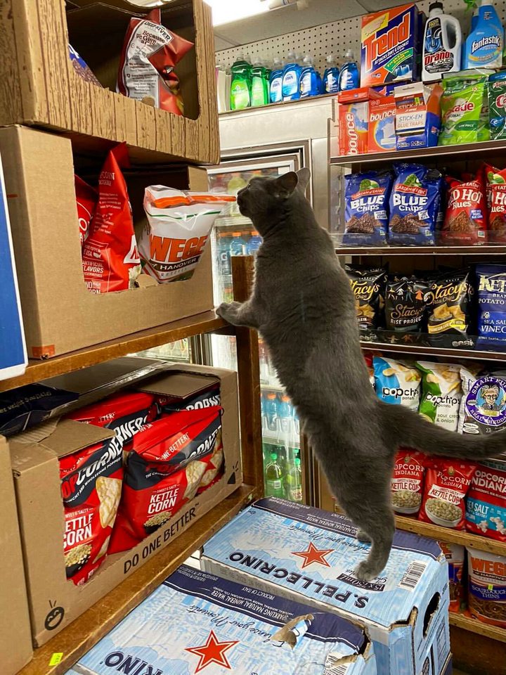 7. Важным преимуществом кота, как продавца, является то, что он с легкостью доберется до любой, даже самой высокой полки