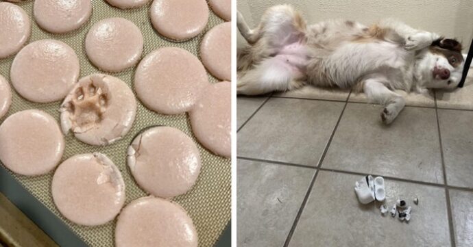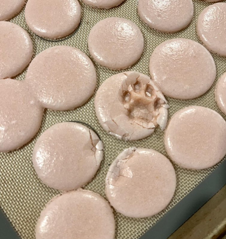 6. “Впервые в жизни пекла макаруны, и очень переживала, чтобы они хорошо получились. Кошка, видимо, тоже нервничала, и решила вот таким способом разрядить обстановку.”