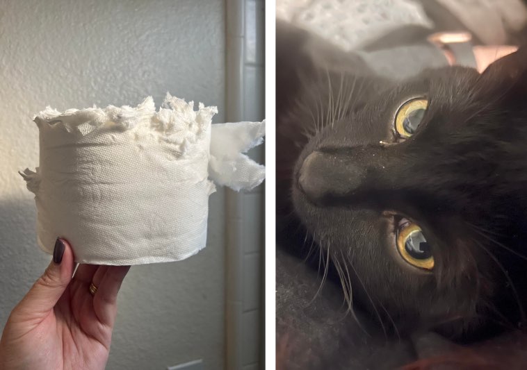 14. “Это уже третий рулон туалетной бумаги, который кот уничтожил за эту неделю”