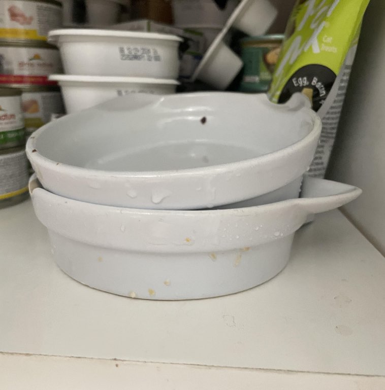 “Моя сестра говорит, что кошкам не нужна чистая посуда, и просто ставит грязные мисочки с прилипшими к ним кусками корма в шкаф”