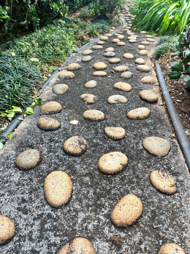 “Эта тропка с зацементированными речными камнями огибает дом моего отца. Каждый раз, когда ее вижу, начинаю невольно переживать за свои ноги.”