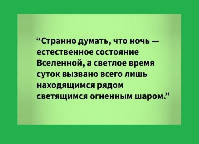 Странно думать, что ночь — естественное состояние Вселенной, а светлое время суток вызвано всего лишь находящимся рядом светящимся огненным шаром.