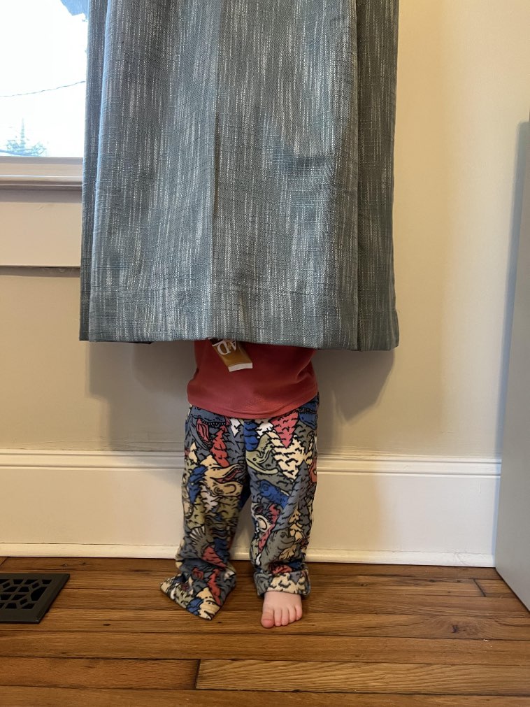 17. Малыш спрятался за шторой, но не учел, что ее длины немного не хватает