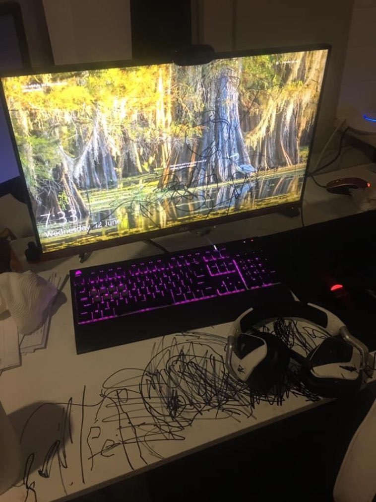 4. “Просто разрисовать стол ему было мало, поэтому он взялся еще и за монитор”