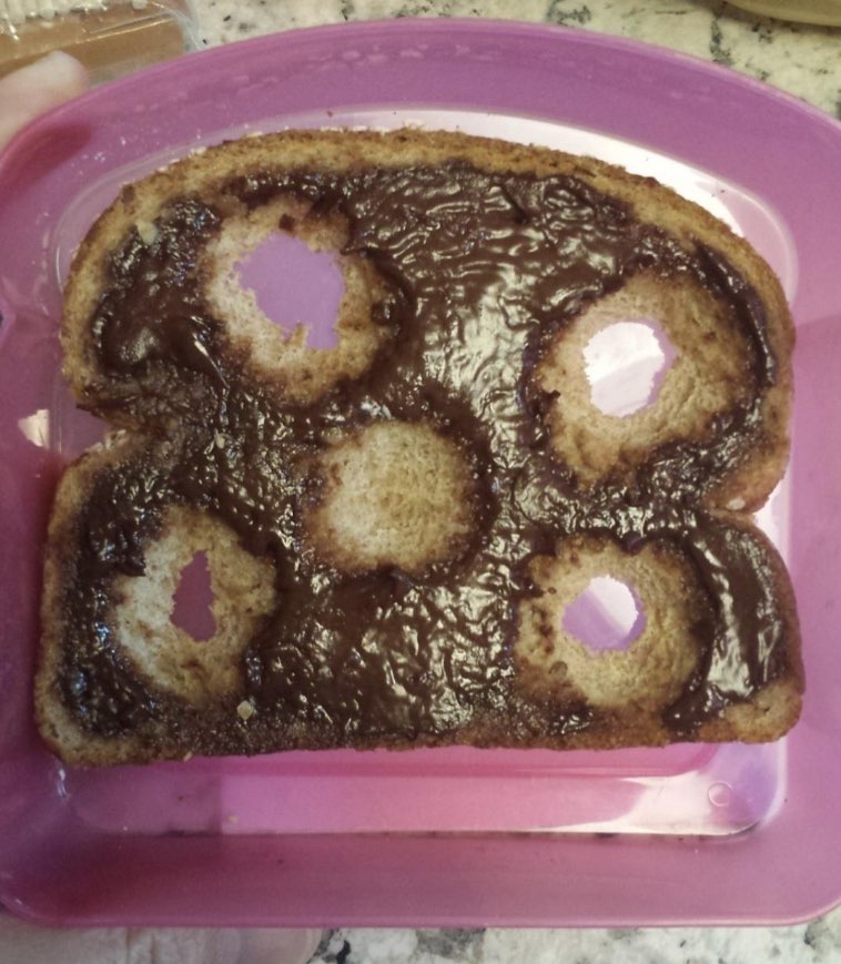 9. “Мой ребенок ест хлеб с шоколадной пастой весьма своеобразным способом”