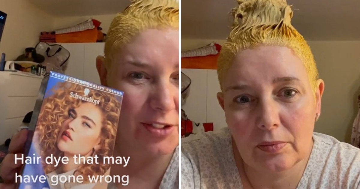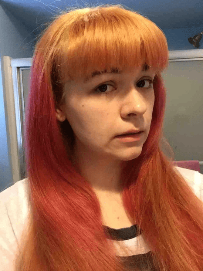 Девушка обесцветила волосы дома, а затем использовала средство для выпрямления