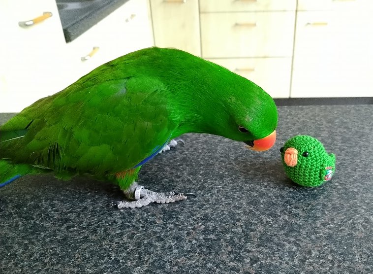 12. Попугайчик немного озадачен тем, что встретил свою уменьшенную копию