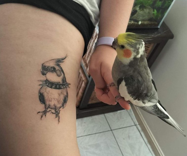 5. “Мой птенчик оценивает татуировку, на которой изображен он сам”