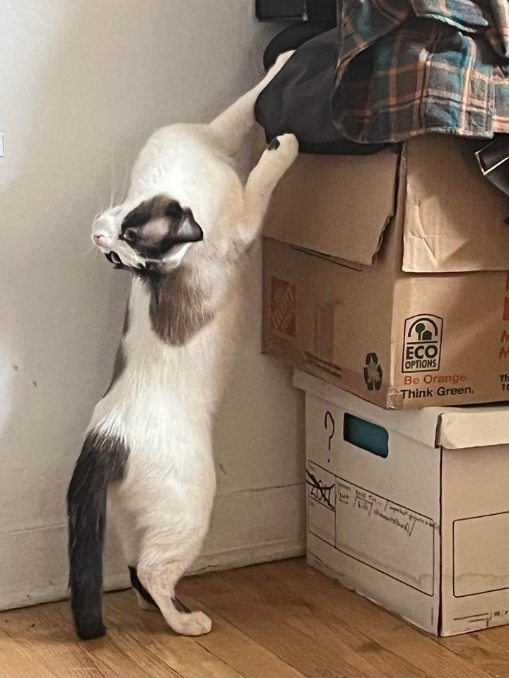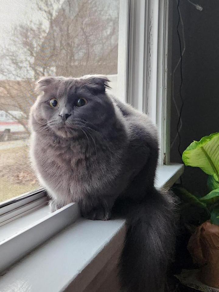6. “Когда моя кошка видит что-нибудь настораживающее, то всегда встает на задние лапки и замирает в такой позе”