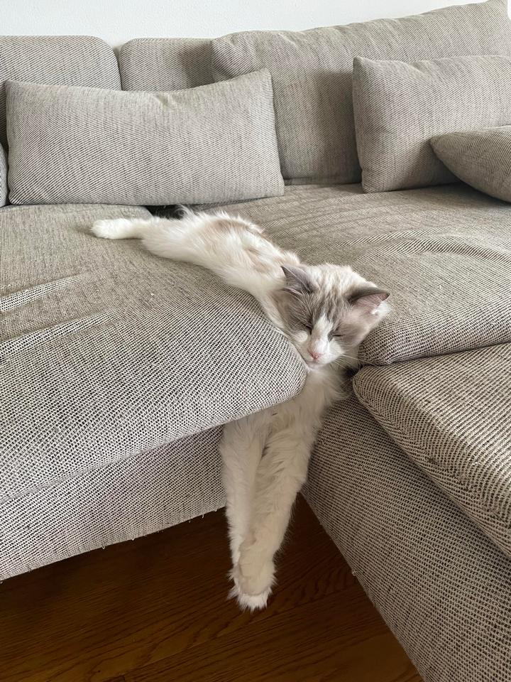2. “Кажется, еще чуть-чуть и диван полностью поглотит моего кота”