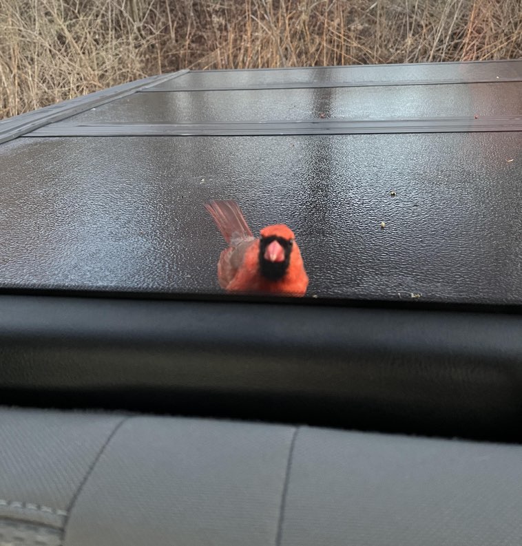 11. “Похоже, этому любопытному красному кардиналу понравился мой грузовик”