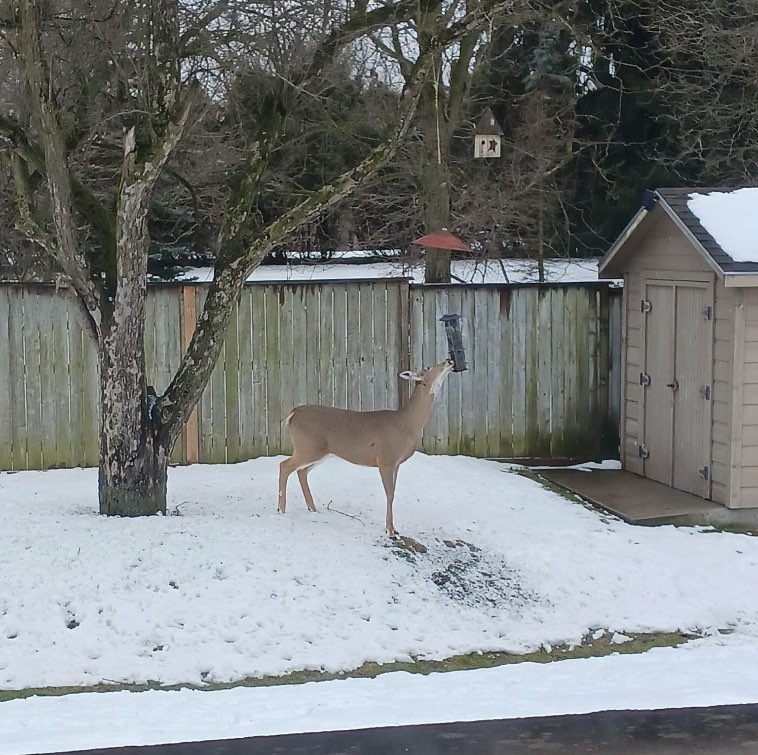 15. “Олененок решил, что в кормушке для птиц и он найдет чем подкрепиться”