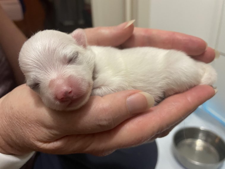 “Эта крохотулька родилась всего 5 дней тому назад, но ее симпатичный носик уже начинает темнеть”