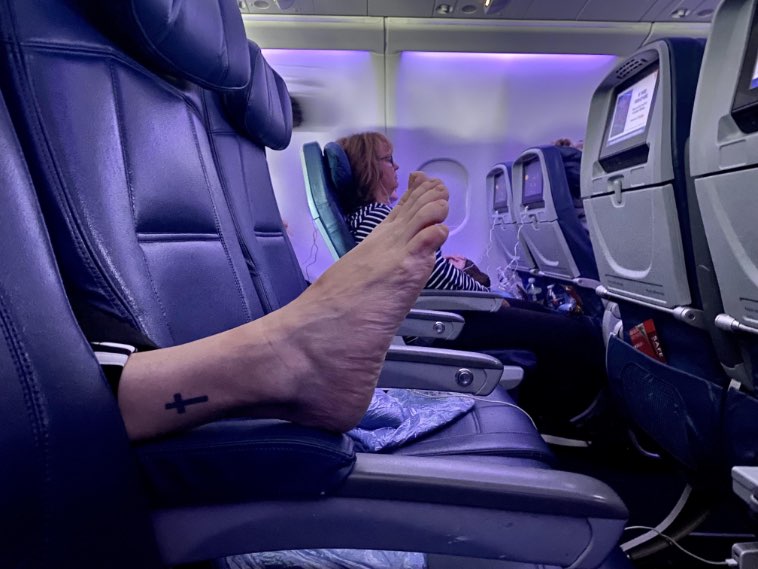 2. “Попутчица сняла обувь и сидела вот так весь перелет, подсовывая свою ногу все ближе и ближе ко мне”