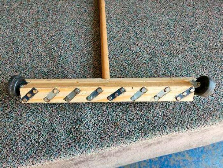 Кому-то на работе пришло в голову сделать магнитную метлу. Цель состоит в том, чтобы собрать с земли все те металлические предметы, которые могут проколоть шины транспортного средства. Его эффективность составляет 100%