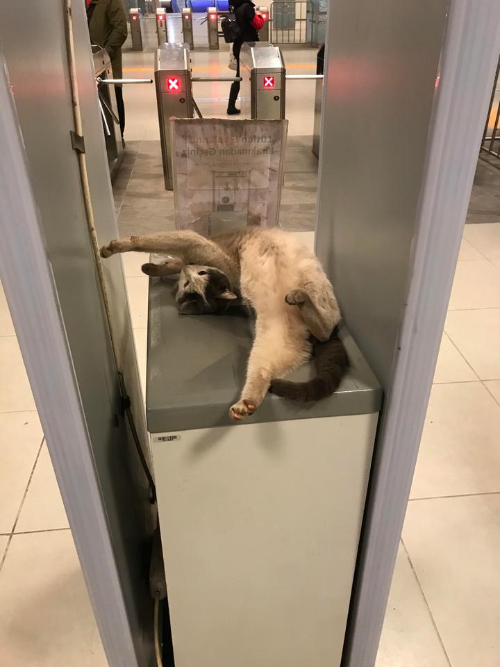 3. “Пушистый сотрудник службы охраны стамбульского метрополитена всегда на посту”