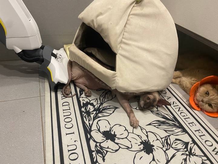 2. “Рыжик засел в углу между стеной и холодильником и отказывается оттуда выходить”