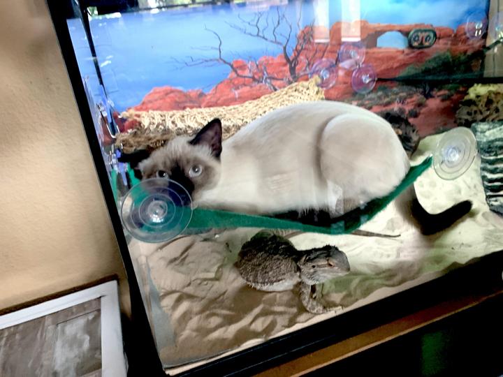 7. “Не знаю, кто больше в шоке: я, которая нашла кота в таком необычном месте, или ящерица, в чей дом так беспардонно влез пушистый хулиган?”
