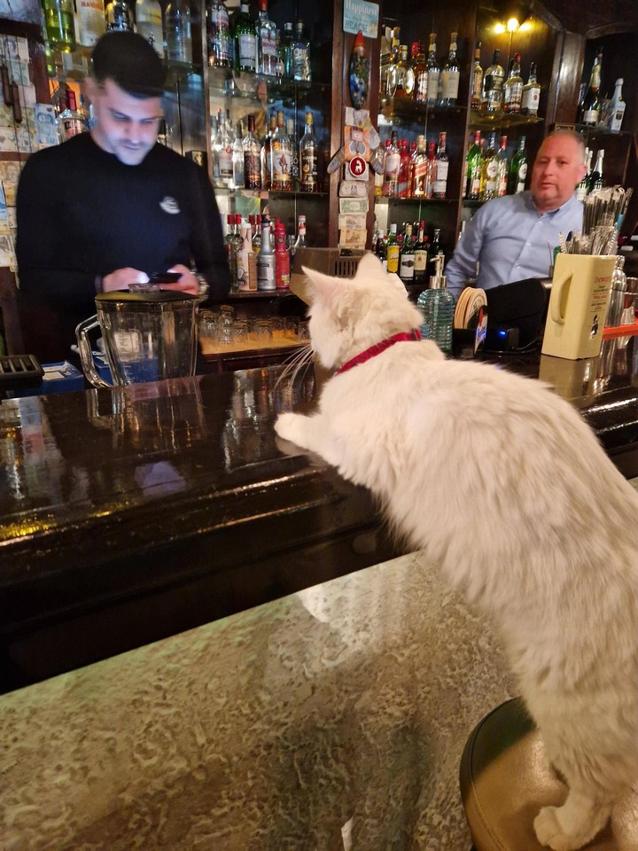9. “Кого я точно не ожидал встретить, так это большого пушистого кота прямо на барной стойке”