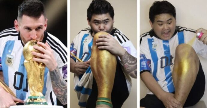 Лидер и капитан сборной Аргентины Лионель Месси поцеловал Кубок мира во время церемонии награждения лучших игроков турнира.