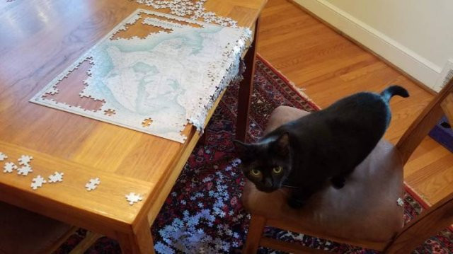 Когда корпел над пазлом несколько дней, то тут подоспел пушистый помощник…