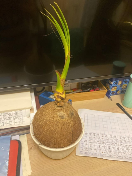 Я забыл свой кокос в кухонном шкафу, и он пророс