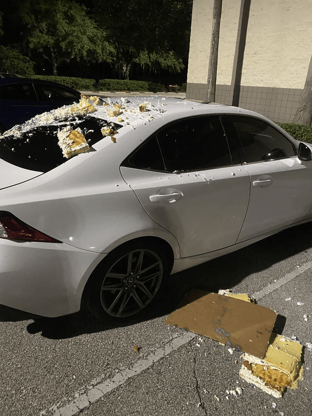 Кто-то скинул торт на машину