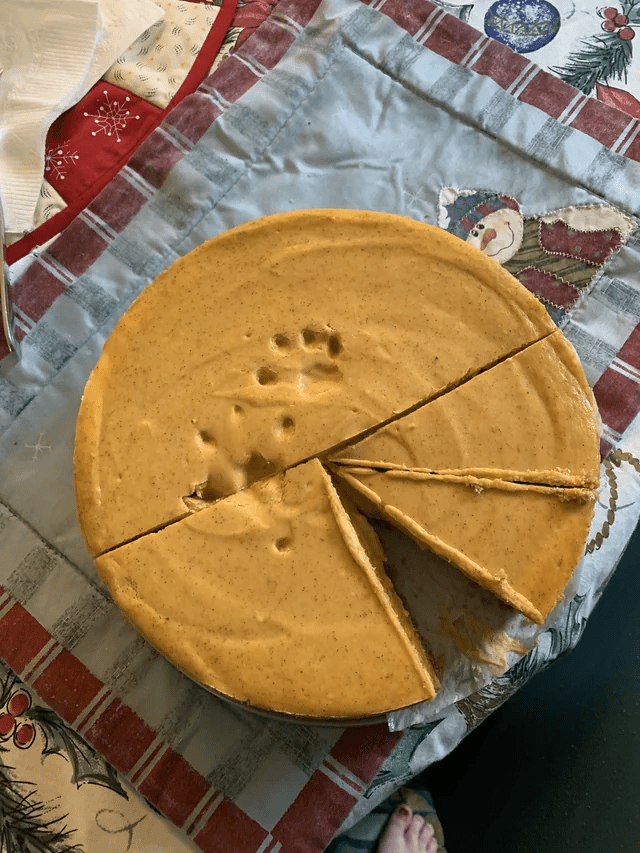 Я приготовила свой первый тыквенный чизкейк. Мой котёнок оценил его.