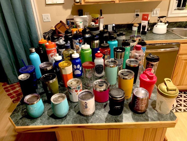 9. “Моя коллекция бутылочек и стаканчиков. Не могу выбросить ни одну, ведь все они мне очень нужны.”