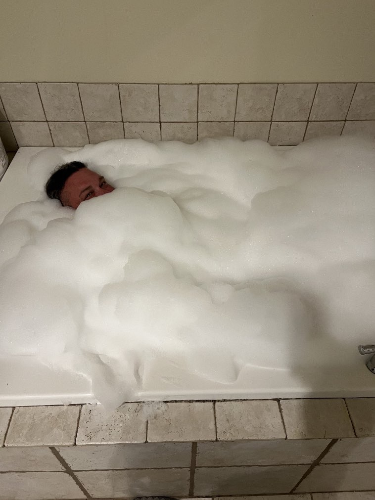 3. “Я впервые за последние 35 лет принимаю ванну и, кажется, на радостях немного перестарался с пеной”