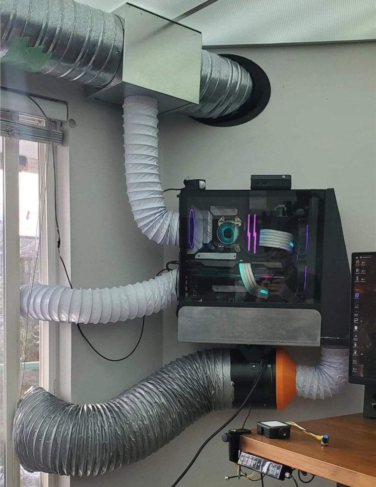 Наверное, это очень мощный компьютер, раз для него понадобилась такая система охлаждения