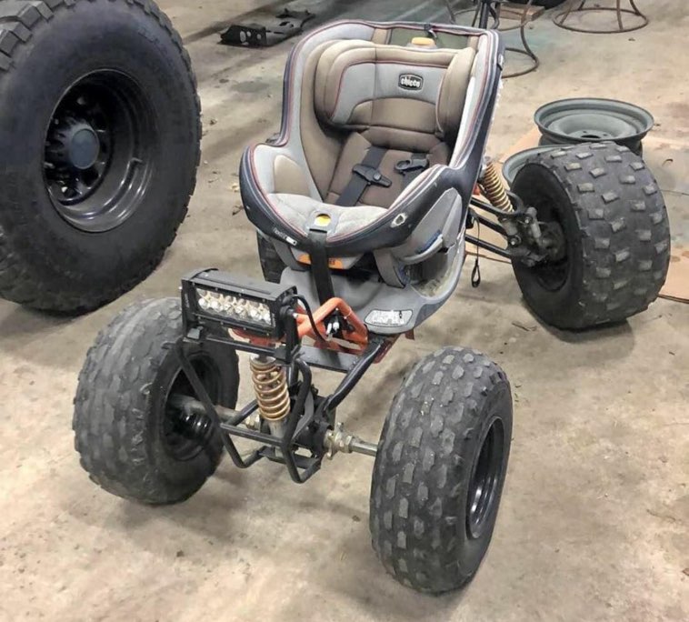 “Это транспортное средство я увидел в одной мастерской. Не знаю, сделали ли его в шутку или оно для чего-то служит, но выглядит круто.”